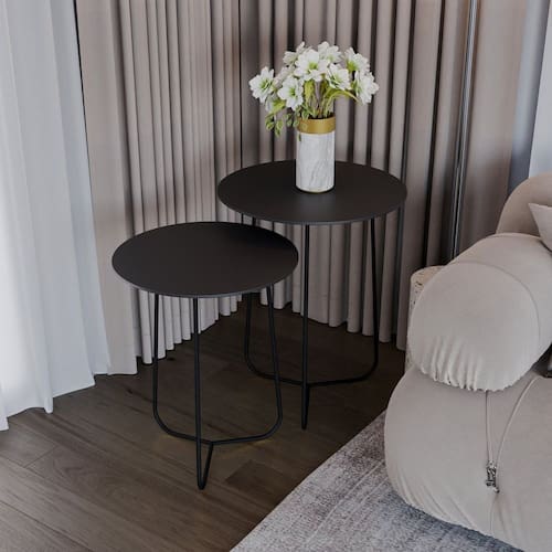O conjunto de mesas de canto TRUDE, consiste em mesas auxiliares que complementam a decoração do ambiente.