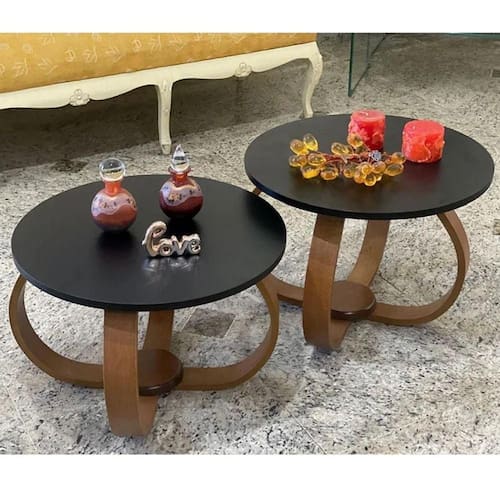 Conjunto Mesa de Centro e Lateral Pés Cebola Preto