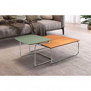 Conjunto Mesa De Centro Kairos Base Cromada Larflex Cor:verde Lazza