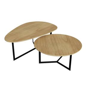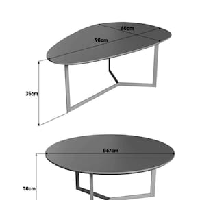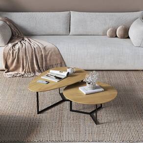 Conjunto Mesa de Centro TRENTO Organica e Redonda, esturtura metalica em aço carbono, tampos em MDF 1,8 cm, com Borda invertida