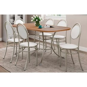 Conjunto: Mesa De Cozinha 1547 Aço C/ Tampo Madeirado 160x90cm E 6 Cadeiras 190 Prata/freijó -prata/branco - Carraro
