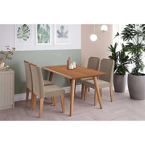 Sala de Jantar Completa Adele Tampo Madeirado 130x80cm e 4 Cadeiras Clarice Carvalho/Cinamomo - Linho Bege - Cimol Abaixo segue os produtos do KIT: Sala de Jantar Completa Adele Tampo Madeirado 130x80cm e 4 Cadeiras Clarice Carvalho/Cinamomo - Linho Bege - Cimol
