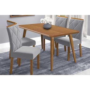 Sala de Jantar Completa Adele Tampo Madeirado 130x80cm e 4 Cadeiras Fernanda Carvalho/Cinamomo - Linho Grafite - Cimol Abaixo segue os produtos do KIT: Sala de Jantar Completa Adele Tampo Madeirado 130x80cm e 4 Cadeiras Fernanda Carvalho/Cinamomo - Linho Grafite - Cimol