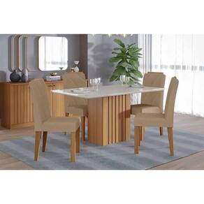 Sala de Jantar Completa Ana Tampo Madeirado c/ Vidro 130x80cm e 4 Cadeiras Fernanda Nature/Off White - Carvalho/Suede Nude Bege - Cimol Abaixo segue os produtos do KIT: Sala de Jantar Completa Ana Tampo Madeirado c/ Vidro 130x80cm e 4 Cadeiras Fernanda Nature/Off White - Carvalho/Suede Nude Bege - Cimol