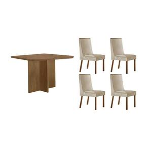 Sala de Jantar Completa Berlim c/ Tampo Madeirado Canto Curvo 90x90cm e 4 Cadeiras Dakota Naturale - Suede Creme - Rufato Abaixo segue os produtos do KIT: Sala de Jantar Completa Berlim c/ Tampo Madeirado Canto Curvo 90x90cm e 4 Cadeiras Dakota Naturale - Suede Creme - Rufato