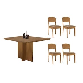 Sala Jantar Mesa Berlim Curvo 90cm + 4 Cadeiras Havana Naturale - Corano Capuccino - Rufato