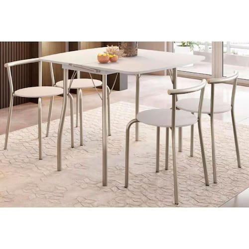 Sala de Jantar Completa Mesa Dobrável e 4 Banquetas 105 Prata/Branco - Prata/Branco - Carraro Abaixo segue os produtos do KIT: Sala de Jantar Completa Mesa Dobrável e 4 Banquetas 105 Prata/Branco - Prata/Branco - Carraro
