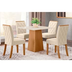 Sala de Jantar Completa Dora Tampo Madeirado 90x90cm e 4 Cadeiras Vita Nature/Linho - Henn Abaixo segue os produtos do KIT: Sala de Jantar Completa Dora Tampo Madeirado 90x90cm e 4 Cadeiras Vita Nature/Linho - Henn