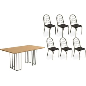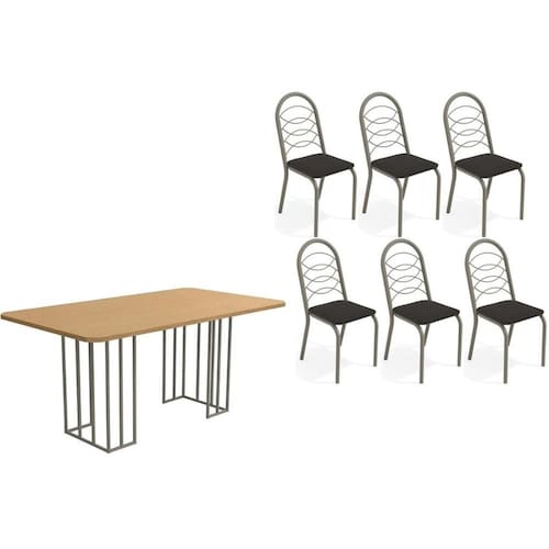 Sala de Jantar Completa Duina c/ Tampo de Madeira 160cm e 6 Cadeiras Holanda Niquel/Freijo - Courano Preto - Kappesberg