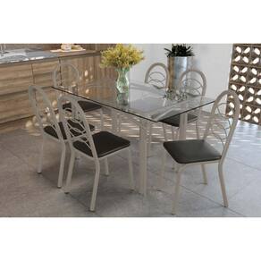 Sala de Jantar Completa Elba c/ Tampo de Vidro 150cm e 6 Cadeiras Holanda Niquel - Courano Preto - Kappesberg Abaixo segue os produtos do KIT: Sala de Jantar Completa Elba c/ Tampo de Vidro 150cm e 6 Cadeiras Holanda Niquel - Courano Preto - Kappesberg