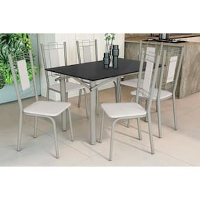 Sala de Jantar Completa Elba Tampo Madeirado c/ Vidro 120cm e 6 Cadeiras Florença Niquel/Preto - Courano Branco - Kappesberg Abaixo segue os produtos do KIT: Sala de Jantar Completa Elba Tampo Madeirado c/ Vidro 120cm e 6 Cadeiras Florença Niquel/Preto - Courano Branco - Kappesberg