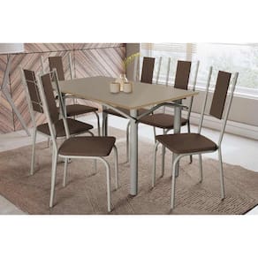 Sala de Jantar Completa Elba Tampo Madeirado c/ Vidro 120cm e 6 Cadeiras Lisboa Niquel/Freijo Bronze - Courano Marrom - Kappesberg Abaixo segue os produtos do KIT: Sala de Jantar Completa Elba Tampo Madeirado c/ Vidro 120cm e 6 Cadeiras Lisboa Niquel/Freijo Bronze - Courano Marrom - Kappesberg