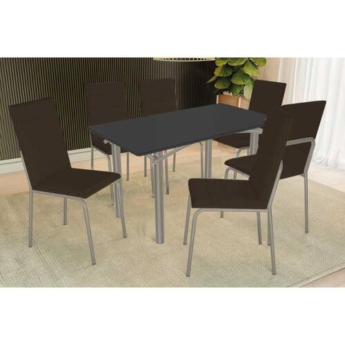 Sala de Jantar Completa Elba Tampo Madeirado c/ Vidro 160cm e 6 Cadeiras Amsterdã Niquel/Preto - Courano Marrom - Kappesberg Abaixo segue os produtos do KIT: Sala de Jantar Completa Elba Tampo Madeirado c/ Vidro 160cm e 6 Cadeiras Amsterdã Niquel/Preto - Courano Marrom - Kappesberg