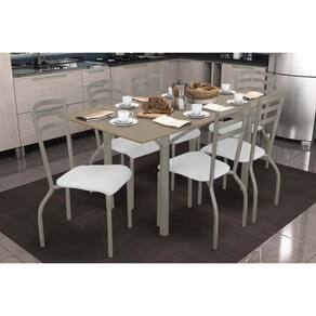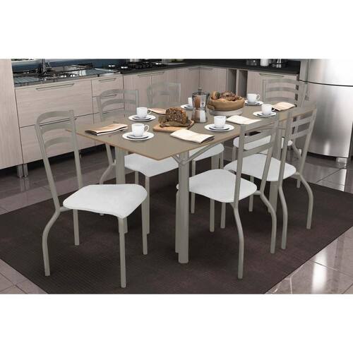 Sala de Jantar Completa Elba Tampo Madeirado c/ Vidro 160cm e 6 Cadeiras Portugal Niquel/Freijo Bronze - Courano Branco - Kappesberg Abaixo segue os produtos do KIT: Sala de Jantar Completa Elba Tampo Madeirado c/ Vidro 160cm e 6 Cadeiras Portugal Niquel/Freijo Bronze - Courano Branco - Kappesberg