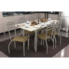 Sala de Jantar Completa Elba Tampo Madeirado c/ Vidro 160cm e 6 Cadeiras Portugal Niquel/Off White - Courano Capuccino - Kappesberg Abaixo segue os produtos do KIT: Sala de Jantar Completa Elba Tampo Madeirado c/ Vidro 160cm e 6 Cadeiras Portugal Niquel/Off White - Courano Capuccino - Kappesberg