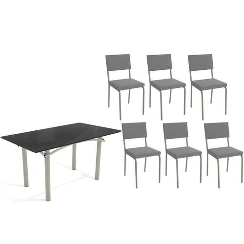 Sala de Jantar Completa Elba Tampo Madeirado c/ Vidro 160cm e 6 Cadeiras Zaria Niquel/Preto - Suede Cinza - Kappesberg Abaixo segue os produtos do KIT: Sala de Jantar Completa Elba Tampo Madeirado c/ Vidro 160cm e 6 Cadeiras Zaria Niquel/Preto - Suede Cinza - Kappesberg