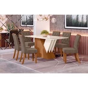 Sala de Jantar Completa Epic Tampo Madeirado c/ Vidro 160x90cm e 6 Cadeiras Vita Nature/Suede Light Bege - Henn
