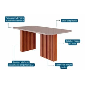 Dimensões(Cm): Comprimento(Profundidade): 180cm x Largura: 90cm x Altura: 76cm Material de Estrutura - Estrutura em MDF Estilo do Móvel - Moderno Tipo de Pintura - UV Tipo de Acabamento da Pintura - Pintura Semi Brilho Tipo de Acabamento - Acabamento Ripado Alto Padrão Vantagens Extras dos Moveis de Sala Estar e Jantar - Sim Tamanho do Tampo - Tampo 180 cm x 90 cm Espessura da Estrutura do Tampo - 25 Tipo de Formato Tampo da Mesa - Tampo Retangular Tipo das Quinas do Tampo da Mesa - Bordas Arredondadas Recomendações de Uso - Instruções de Cuidado Montagem do Produto - Desmontável - Necessita de Montagem Sistema de Montagem - Acompanha Manual de Instalação e Montagem Nossa Avaliação - Qualidade Muito Boa Certificação de Qualidade - Qualidade Aprovada Garantia - 3 meses