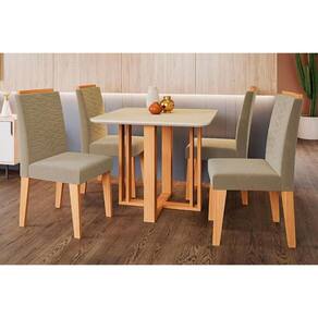 Sala de Jantar Completa Flora c/ Tampo Madeirado c/ Vidro 95x95cm e 4 Cadeiras Clarice Madeirado/ Linho Bege - Cimol Abaixo segue os produtos do KIT: Sala de Jantar Completa Flora c/ Tampo Madeirado c/ Vidro 95x95cm e 4 Cadeiras Clarice Madeirado/ Linho Bege - Cimol
