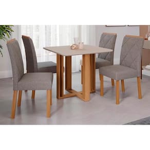 Sala de Jantar Completa Flora c/ Tampo Madeirado c/ Vidro 95x95cm e 4 Cadeiras Fernanda Madeirado/Linho Grafite - Cimol Abaixo segue os produtos do KIT: Sala de Jantar Completa Flora c/ Tampo Madeirado c/ Vidro 95x95cm e 4 Cadeiras Fernanda Madeirado/Linho Grafite - Cimol