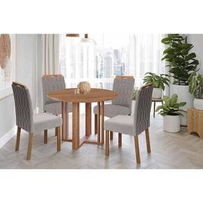 Conjunto: Mesa De Cozinha Flora Tampo Madeirado 109cm E 4 Cadeiras Paola Cinamomo - Carvalho/linho Grafite - Cimol