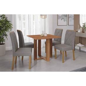 Conjunto: Mesa De Cozinha Flora Tampo Madeirado 95x95cm E 4 Cadeiras Fernanda Cinamomo - Carvalho/linho Grafite - Cimol