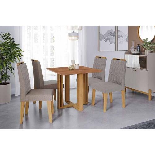 Conjunto: Mesa De Cozinha Flora Tampo Madeirado 95x95cm E 4 Cadeiras Paola Cinamomo - Carvalho/linho Grafite - Cimol