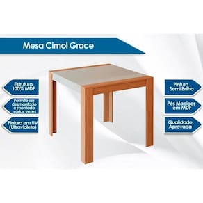 Abaixo segue os produtos do KIT: Sala de Jantar Completa Grace Tampo Madeirado 90x90cm e 4 Cadeiras Nicole Nature/Suede Joli Chocolate - Cimol