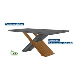 Mesa de Sala Jantar Imperatriz c/ Tampo 180x90cm Madeirado Vidro Canto Curvo - Imbuia/Grafite - Rufato