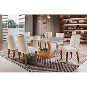 Sala de Jantar Completa Jade Tampo Madeirado c/ Vidro Reto 180x90 e 6 Cadeiras Jade Imbuia/Suede Creme - Rufato