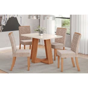 Sala de Jantar Completa Lins c/ Tampo Madeirado c/ Vidro Curvo 120x80cm e 4 Cadeiras Esther Nature/Linho Creme - Henn Abaixo segue os produtos do KIT: Sala de Jantar Completa Lins c/ Tampo Madeirado c/ Vidro Curvo 120x80cm e 4 Cadeiras Esther Nature/Linho Creme - Henn