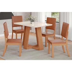 Sala de Jantar Completa Lins c/ Tampo Madeirado c/ Vidro Curvo 120x80cm e 4 Cadeiras Milla Plus Nature/Courano/Caramelo - Henn