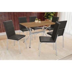 Sala de Jantar Completa Loire c/ Tampo de Madeira 160cm e 6 Cadeiras Amsterdã Cromada/Preto - Kappesberg Abaixo segue os produtos do KIT: Sala de Jantar Completa Loire c/ Tampo de Madeira 160cm e 6 Cadeiras Amsterdã Cromada/Preto - Kappesberg Tampo Mesa Sala de Jantar Madeirado F160 Retangular 90x160cm Nogueira - Kappesberg