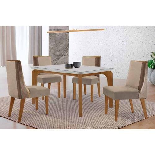 Sala de Jantar Completa Londrina c/ Tampo Madeirado c/ Vidro Canto Curvo 120x80cm 4 Cadeiras Tilia Naturale/Off White - Linho Capuccino - Rufato Abaixo segue os produtos do KIT: Sala de Jantar Completa Londrina c/ Tampo Madeirado c/ Vidro Canto Curvo 120x80cm 4 Cadeiras Tilia Naturale/Off White - Linho Capuccino - Rufato