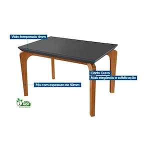 Mesa de Sala Jantar Londrina c/ Tampo 120x80cm Madeirado Vidro Canto Curvo - Imbuia/Off White - Rufato