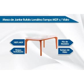 Mesa de Sala Jantar Londrina c/ Tampo 120x80cm Madeirado Vidro Canto Reto - Imbuia/Grafite - Rufato