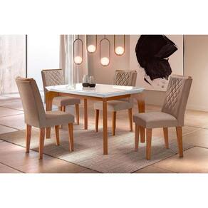 Sala de Jantar Completa Londrina Tampo Madeirado c/ Vidro 120x80cm e 4 Cadeiras Jade Capuccino/Linho Bege Turim - Rufato