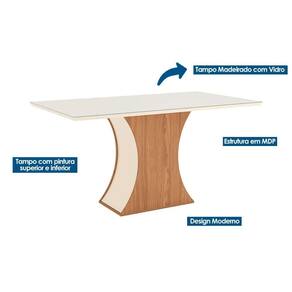 Mesa de Sala Jantar Luiza SC16 c/ Tampo Madeirado c/ Vidro Reto 160x90cm Nature/Off White - Henn