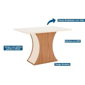 Mesa de Sala Jantar Luiza SC18 c/ Tampo Madeirado c/ Vidro Reto 120x80cm Nature/Off White - Henn