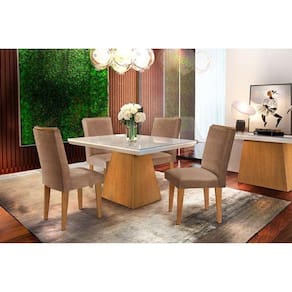 Sala de Jantar Completa Luna Tampo Madeirado c/ Vidro Canto Reto 120x80cm e 4 Cadeiras Lunara Imbuia/Suede Capuccino - Rufato Abaixo segue os produtos do KIT: Sala de Jantar Completa Luna Tampo Madeirado c/ Vidro Canto Reto 120x80cm e 4 Cadeiras Lunara Imbuia/Suede Capuccino - Rufato