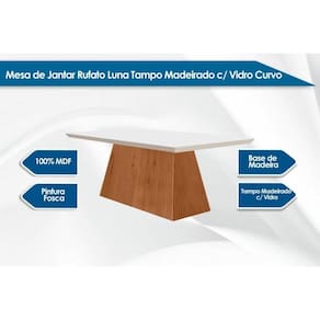Mesa de Sala Jantar Luna c/ Tampo 180x90cm Madeirado Vidro Canto Curvo - Imbuia/Ripado 3D/Off White - Rufato