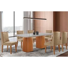 Sala de Jantar Completa Maldivas c/ Tampo Madeirado c/ Vidro Canto Curvo 180x90cm e 6 Cadeiras Dafne Naturale/Off White - Linho Bege - Rufato Abaixo segue os produtos do KIT: Sala de Jantar Completa Maldivas c/ Tampo Madeirado c/ Vidro Canto Curvo 180x90cm e 6 Cadeiras Dafne Naturale/Off White - Linho Bege - Rufato