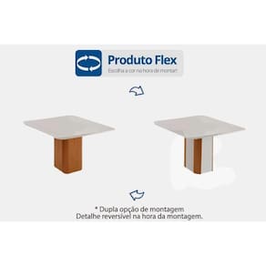 Mesa de Sala Jantar Maldivas c/ Tampo Madeirado c/ Vidro Canto Curvo 90X90cm Flex Naturale/Naturale ou Off White - Rufato