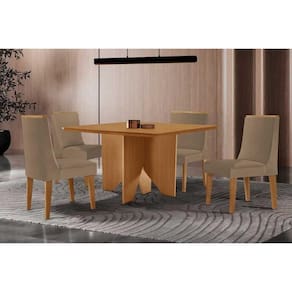 Sala de Jantar Completa Nevada c/ Tampo Madeirado Canto Curvo 90x90cm e 4 Cadeiras Dakota Naturale - Suede Capuccino - Rufato Abaixo segue os produtos do KIT: Sala de Jantar Completa Nevada c/ Tampo Madeirado Canto Curvo 90x90cm e 4 Cadeiras Dakota Naturale - Suede Capuccino - Rufato