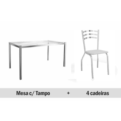 Sala de Jantar Completa Reno c/ Tampo Vidro 150x80cm e 4 Cadeiras Portugal Cromada - Assento Branco 106 - Kappesberg Abaixo segue os produtos do KIT: Sala de Jantar Completa Reno c/ Tampo Vidro 150x80cm e 4 Cadeiras Portugal Cromada - Assento Branco 106 - Kappesberg