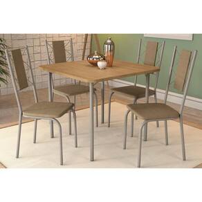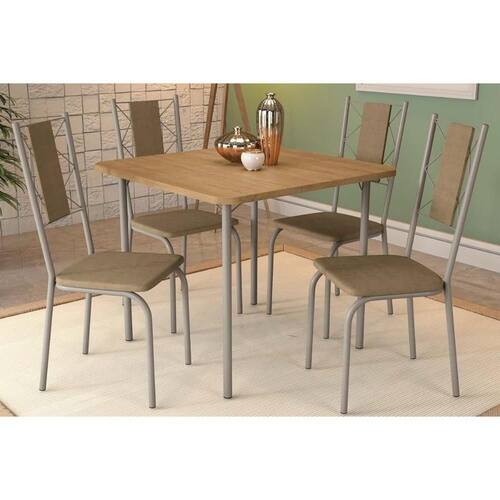 Conjunto: Mesa De Cozinha Sena Tampo Madeirado 90x90cm E 4 Cadeiras Lisboa Niquel/nogueira - Capuccino - Kappesberg