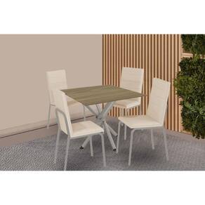 Sala de Jantar Completa Volga c/ Tampo de Madeira 90cm e 4 Cadeiras Amsterdã Niquel - Bege - Kappesberg Abaixo segue os produtos do KIT: Sala de Jantar Completa Volga c/ Tampo de Madeira 90cm e 4 Cadeiras Amsterdã Niquel - Bege - Kappesberg