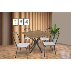 Sala de Jantar Completa Volga c/ Tampo de Madeira 90cm e 4 Cadeiras Noruega Preto/Nogueira - Branco - Kappesberg Abaixo segue os produtos do KIT: Sala de Jantar Completa Volga c/ Tampo de Madeira 90cm e 4 Cadeiras Noruega Preto/Nogueira - Branco - Kappesberg