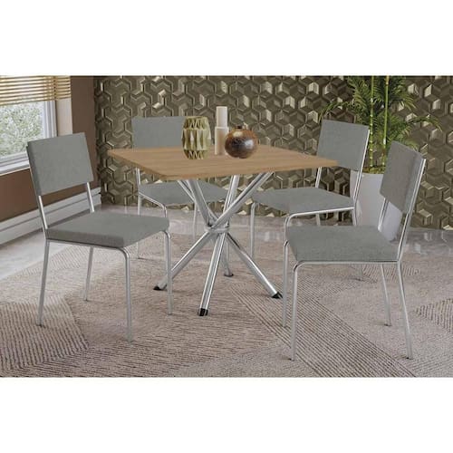 Sala de Jantar Completa Volga c/ Tampo de Madeira 90cm e 4 Cadeiras Zaria Cromada/Nogueira - Suede Cinza - Kappesberg Abaixo segue os produtos do KIT: Sala de Jantar Completa Volga c/ Tampo de Madeira 90cm e 4 Cadeiras Zaria Cromada/Nogueira - Suede Cinza - Kappesberg