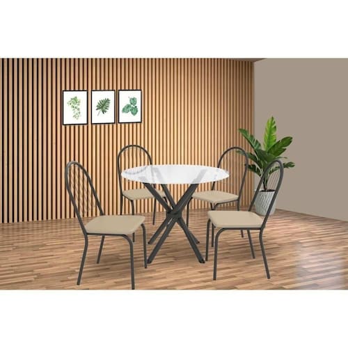 Conjunto: Mesa De Cozinha Volga C/ Tampo De Vidro 95cm E 4 Cadeiras Noruega Preto - Bege - Kappesberg
